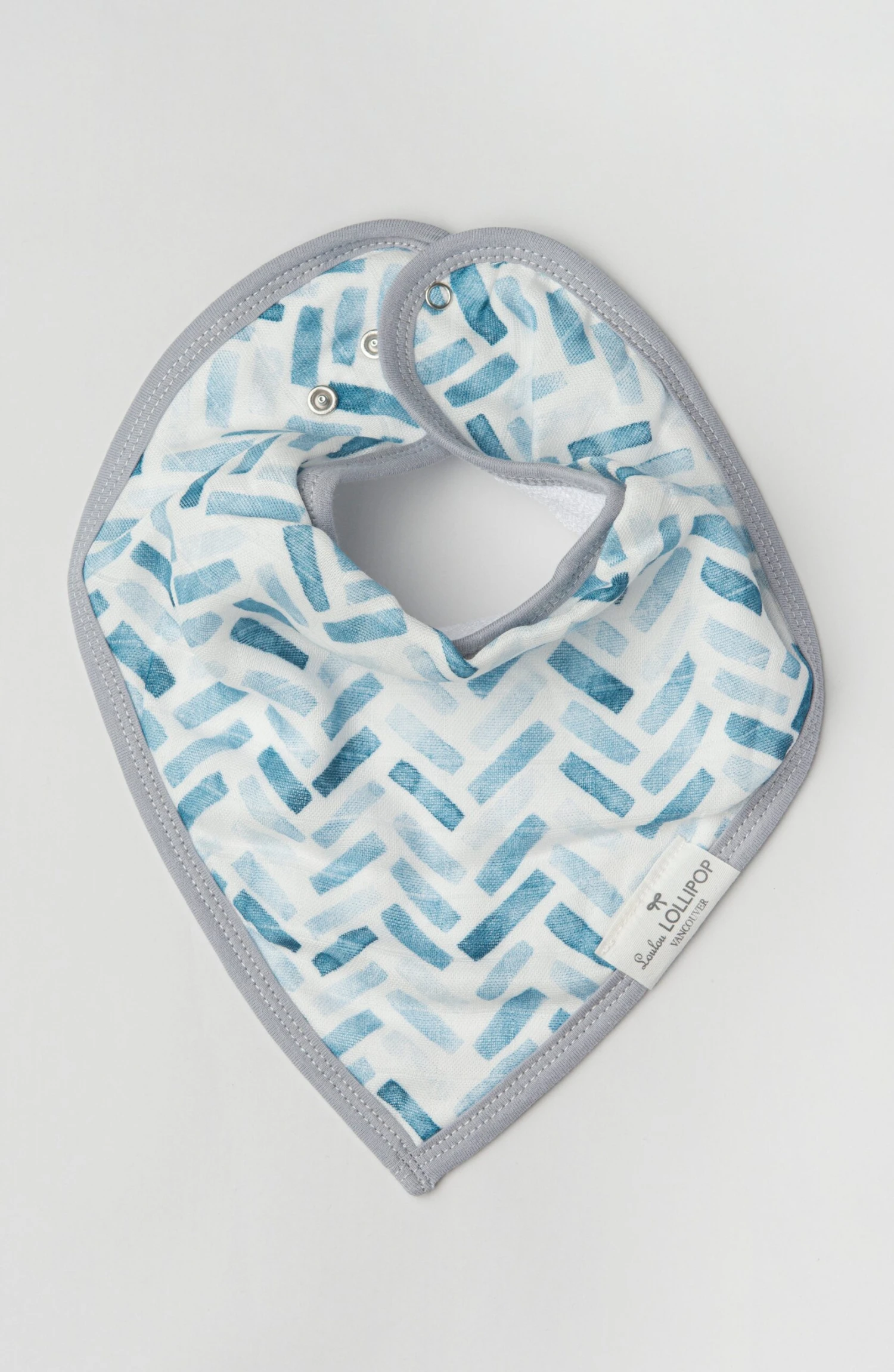 Our muslin bandana bibs have a super-absorbent and buttery-soft bamboo terrycloth backing to withstand dribbles, spit-ups, and spills and prevent irritations. The bibs feature a front neck panel that goes over the trim to eliminate neck irritation. Three adjustable nickel-free snaps to fit babies from three to 36 months. Available in a wide variety of fun prints and designs, these are the only drool bibs you will need. Manufactured at an OEKO-TEX Standard 100 certified factory, you can feel confident that our bandana bibs are free of toxic chemicals and safe for your baby.