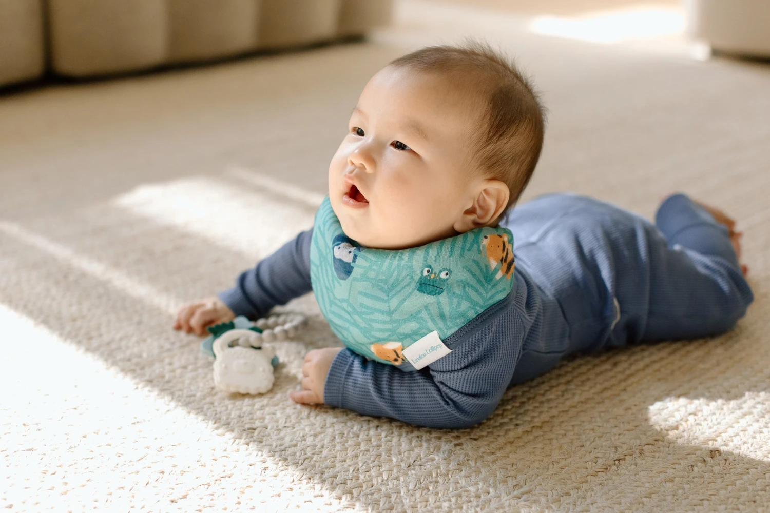 Our muslin bandana bibs have a super-absorbent and buttery-soft bamboo terrycloth backing to withstand dribbles, spit-ups, and spills and prevent irritations. The bibs feature a front neck panel that goes over the trim to eliminate neck irritation. Three adjustable nickel-free snaps to fit babies from three to 36 months. Available in a wide variety of fun prints and designs, these are the only drool bibs you will need. Manufactured at an OEKO-TEX Standard 100 certified factory, you can feel confident that our bandana bibs are free of toxic chemicals and safe for your baby.