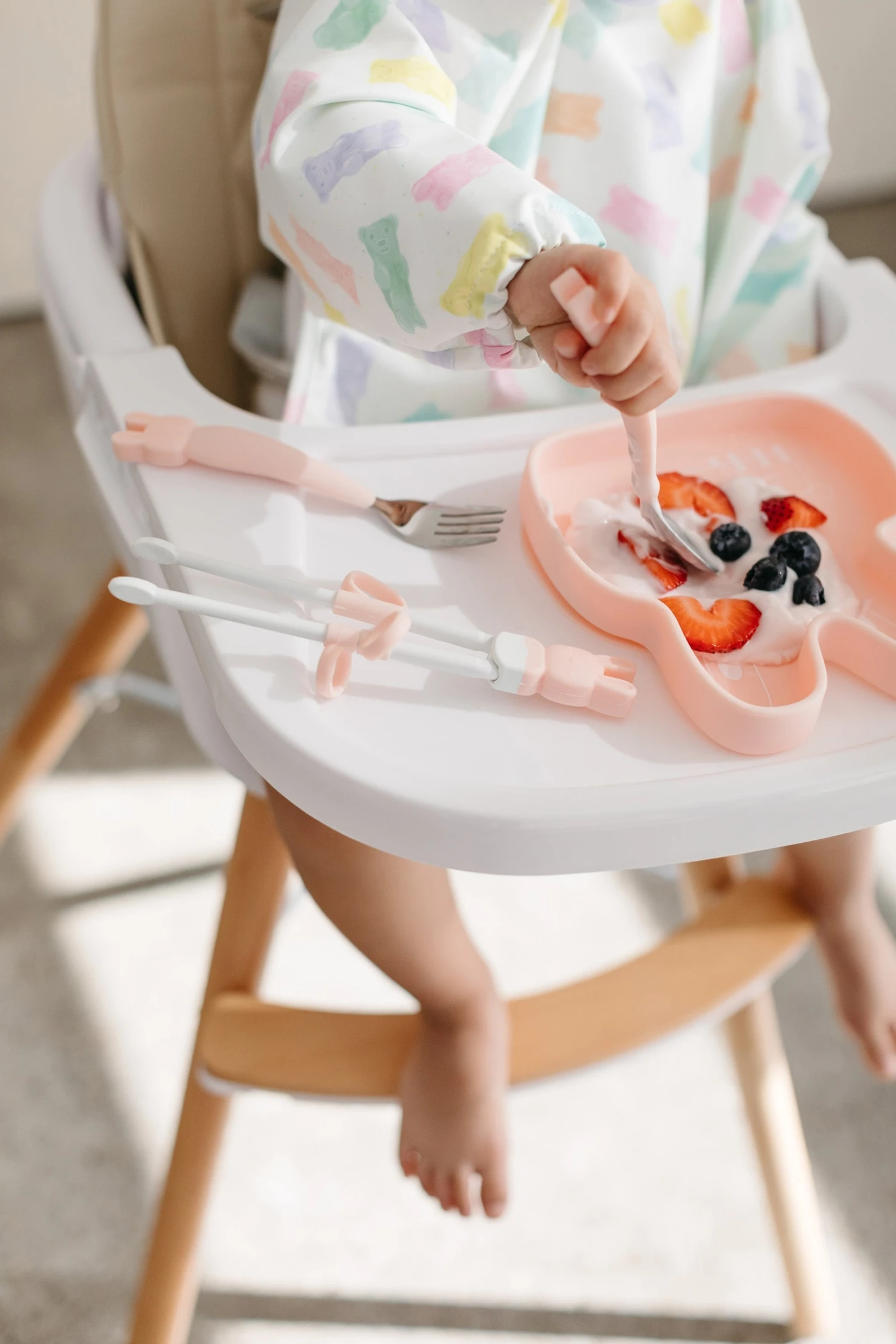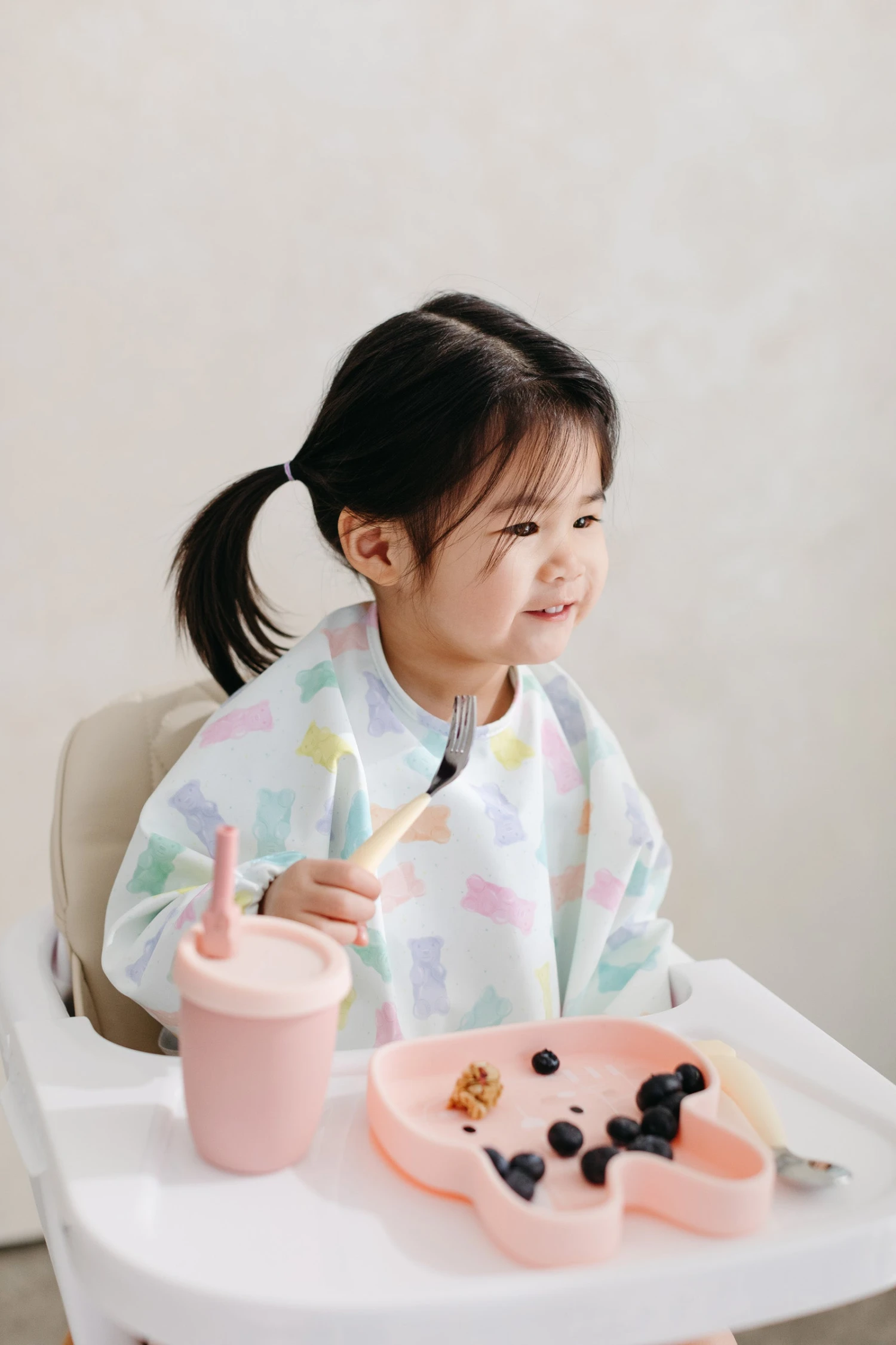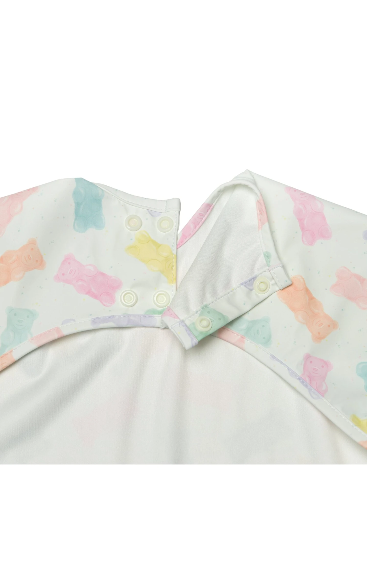 Hate doing extra laundry? Well, this full-coverage bib just became your saving grace. Our long sleeve waterproof bib is made with 100% responsibly sourced recycled polyester with TPU coating that is waterproof, stain, and odor resistant. Standard 100 by Oeko-tex certified. Designed with an adjustable neckline with snaps and elasticized cuffs allow for a comfortable fit that grows with baby to toddler from 6 months to 3 years old.