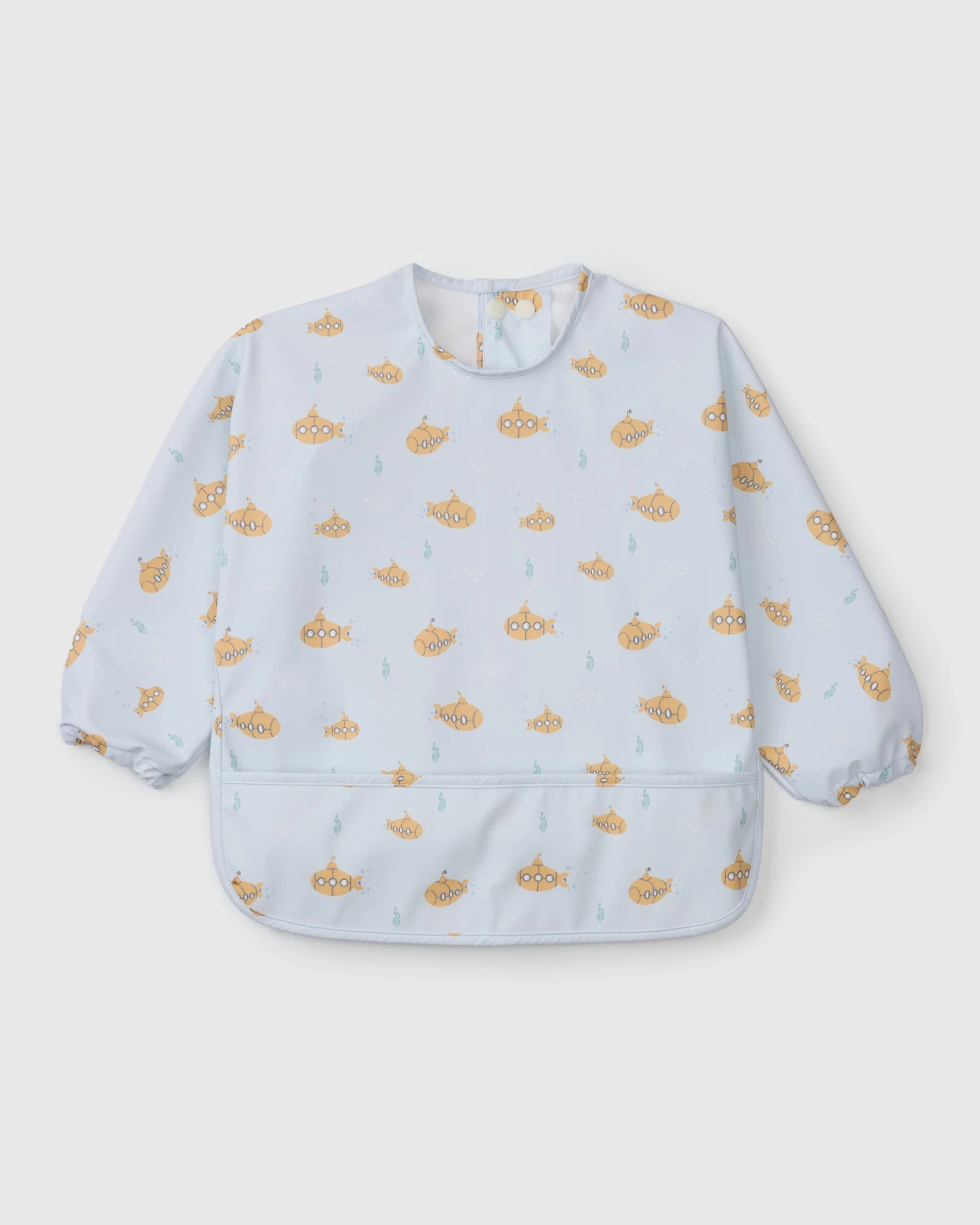 Hate doing extra laundry? Well, this full-coverage bib just became your saving grace. Our long sleeve waterproof bib is made with 100% responsibly sourced recycled polyester with TPU coating that is waterproof, stain, and odor resistant. Standard 100 by Oeko-tex certified. Designed with an adjustable neckline with snaps and elasticized cuffs allow for a comfortable fit that grows with baby to toddler from 6 months to 3 years old.