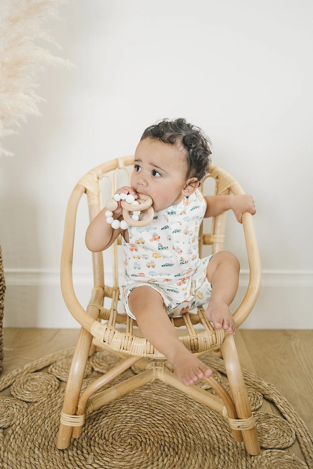 Made from our signature blend of ultra-soft and sustainable fabric using TENCEL™ Lyocell and organic cotton, this baby boy’s short romper is great for playing on those hot summer days. It features a stylish tank-styled top, a front pocket, and full snaps opening on the bottom shorts for easy dressing.