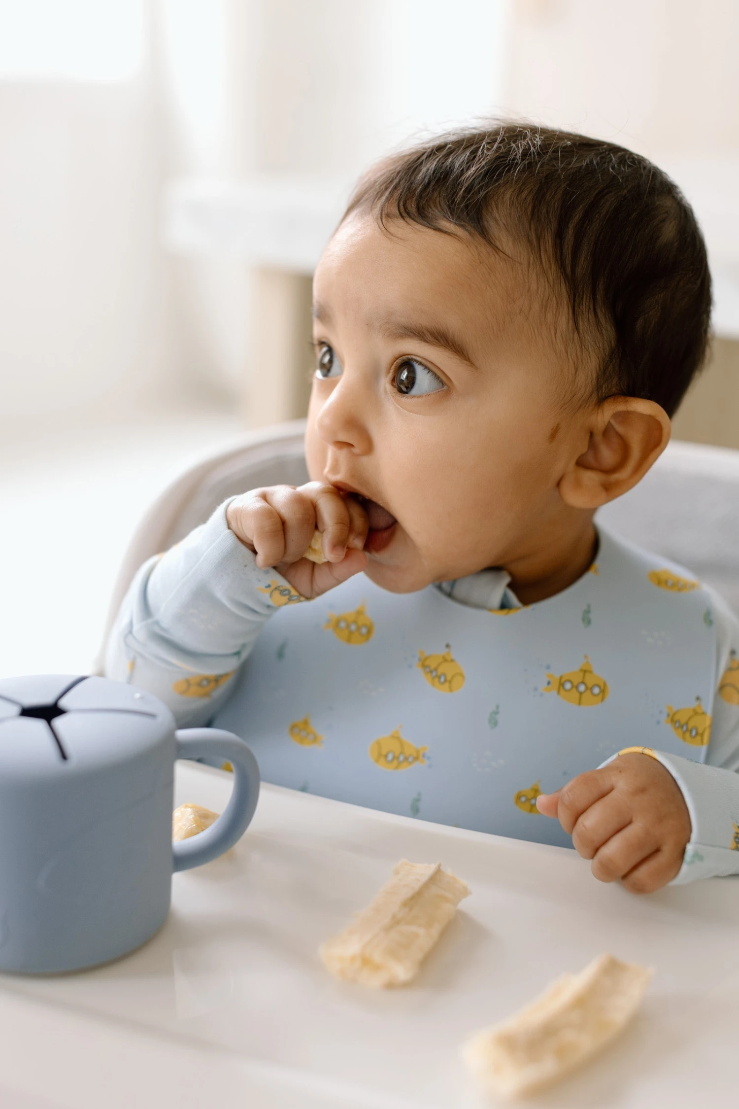 Our silicone bibs are buttery, soft, waterproof, and stain-resistant. It is easy to clean; simply wipe it down for a quick cleaning or put it in the top rack dishwasher for a deep clean. It features a wide catch-all pouch below a high chair tray – perfect for collecting food, crumbs, and spills. Reinforced summaryholes for a durable and adjustable fit for long-lasting wear, suitable for ages 3 – 36 months. This handy bib is available in various modern colours and fresh designs to make mealtime fun.