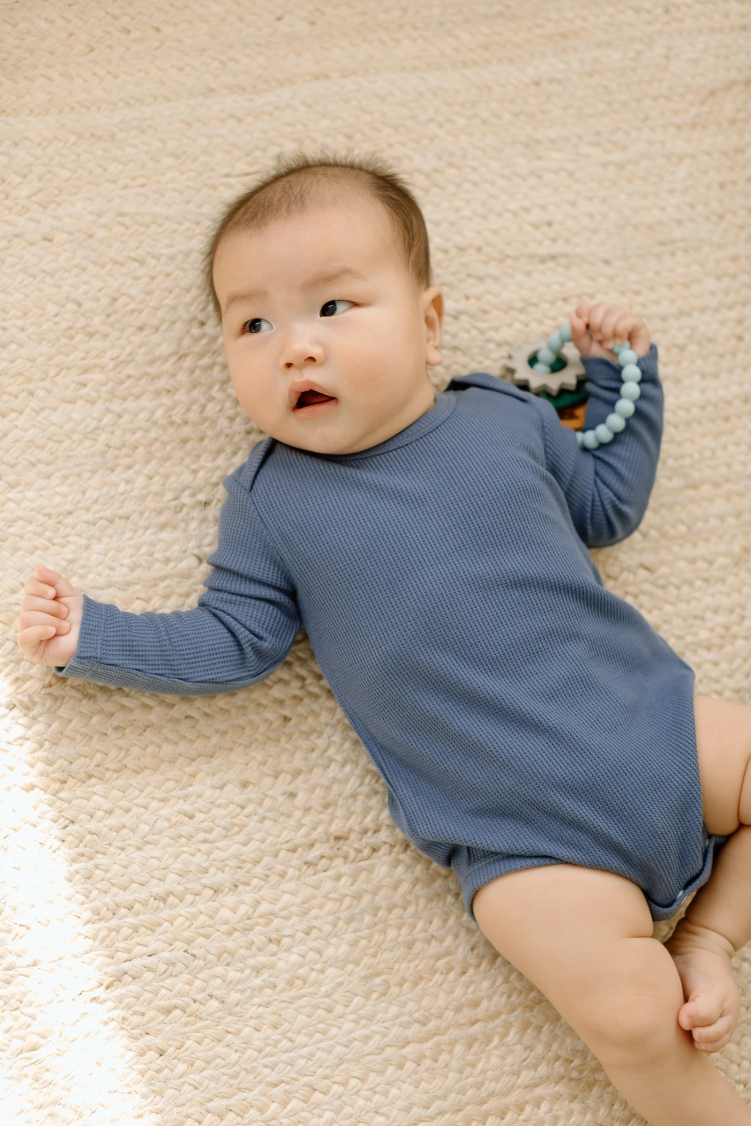 Waffle Long Sleeve Bodysuit – Denim Blue