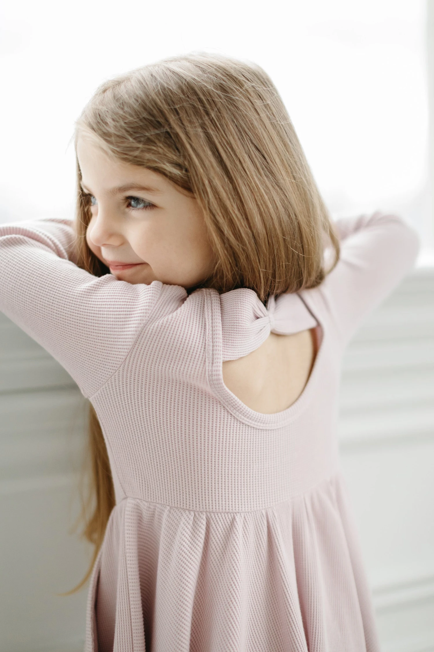 A dress is designed for twirling! Made with our signature soft and sustainable TENCEL ™ Lyocell waffle jersey, it has a fitted bodice, a scoop back adorned with a bow, and oversized side pockets for where the adventure will take them.