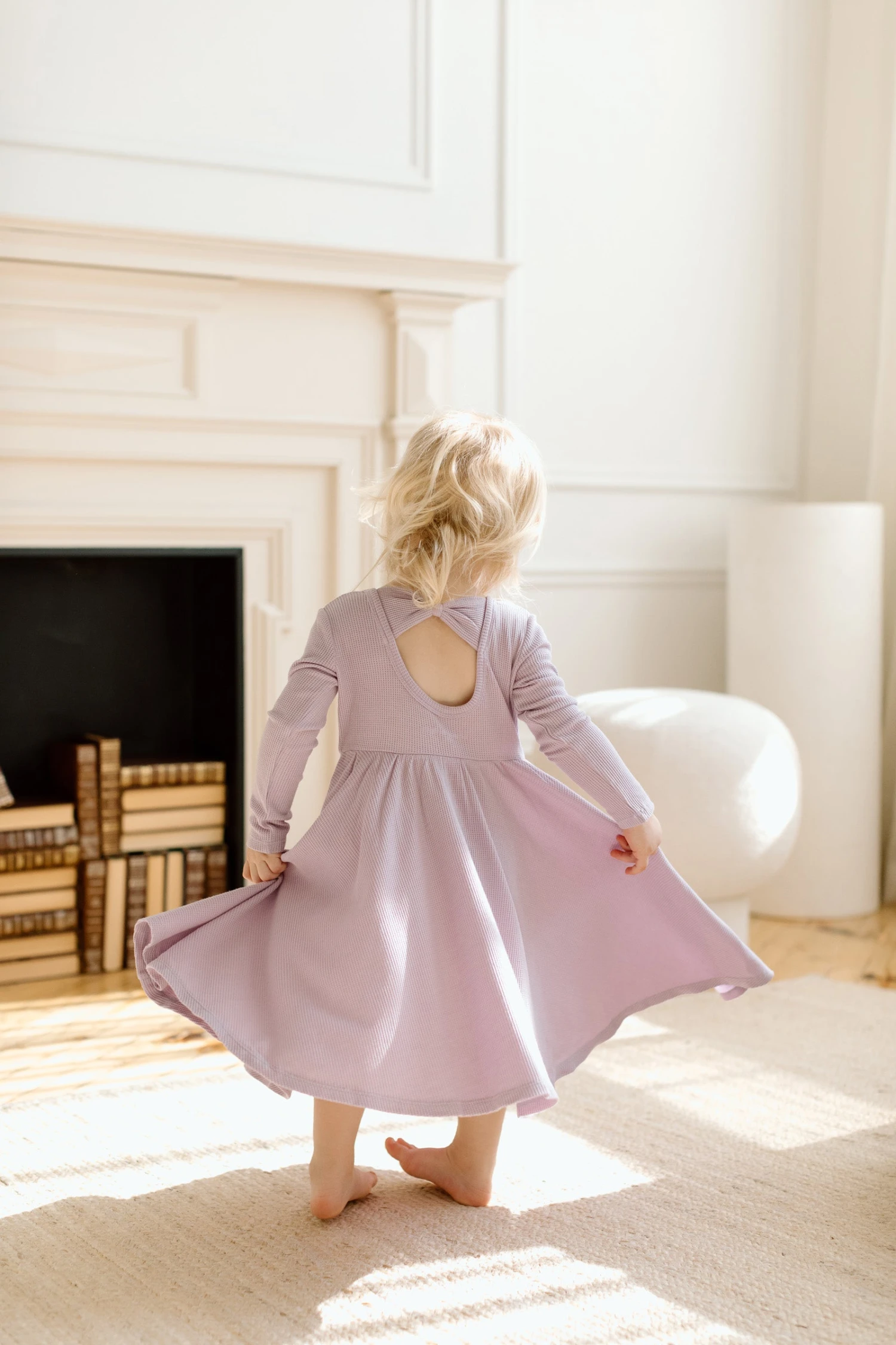 A dress is designed for twirling! Made with our signature soft and sustainable TENCEL ™ Lyocell waffle jersey, it has a fitted bodice, a scoop back adorned with a bow, and oversized side pockets for where the adventure will take them.