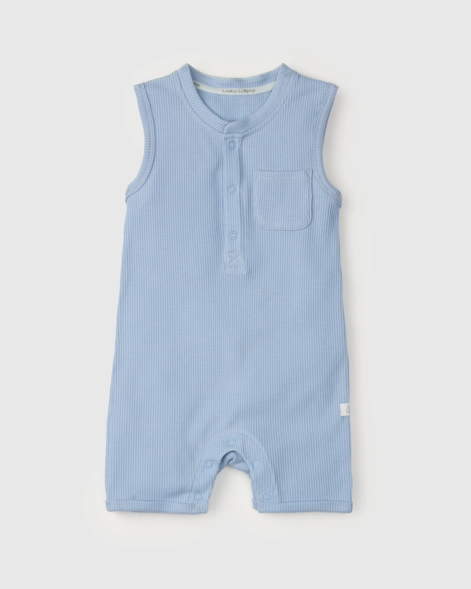 Waffle Short Romper – Blue Fog