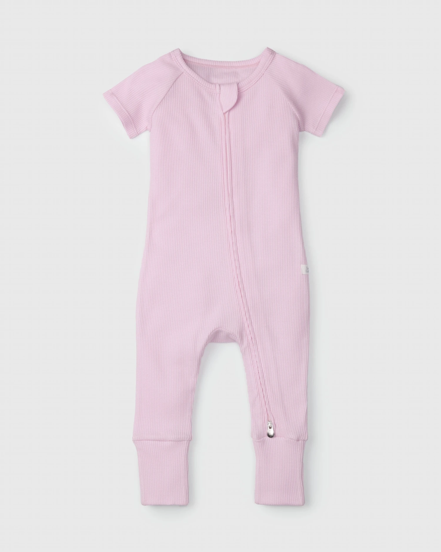 Waffle Short Sleeve Zipped Romper – Lilac